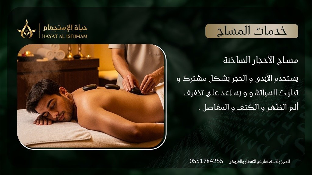 استخدام أحجار دافئة لإرخاء العضلات بعمق وتحسين الاسترخاء.